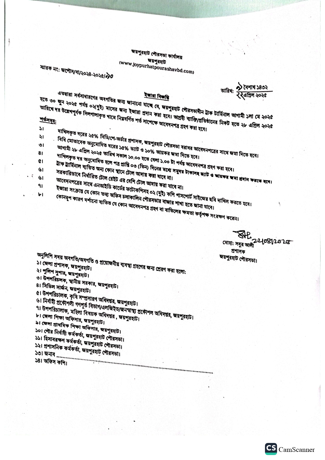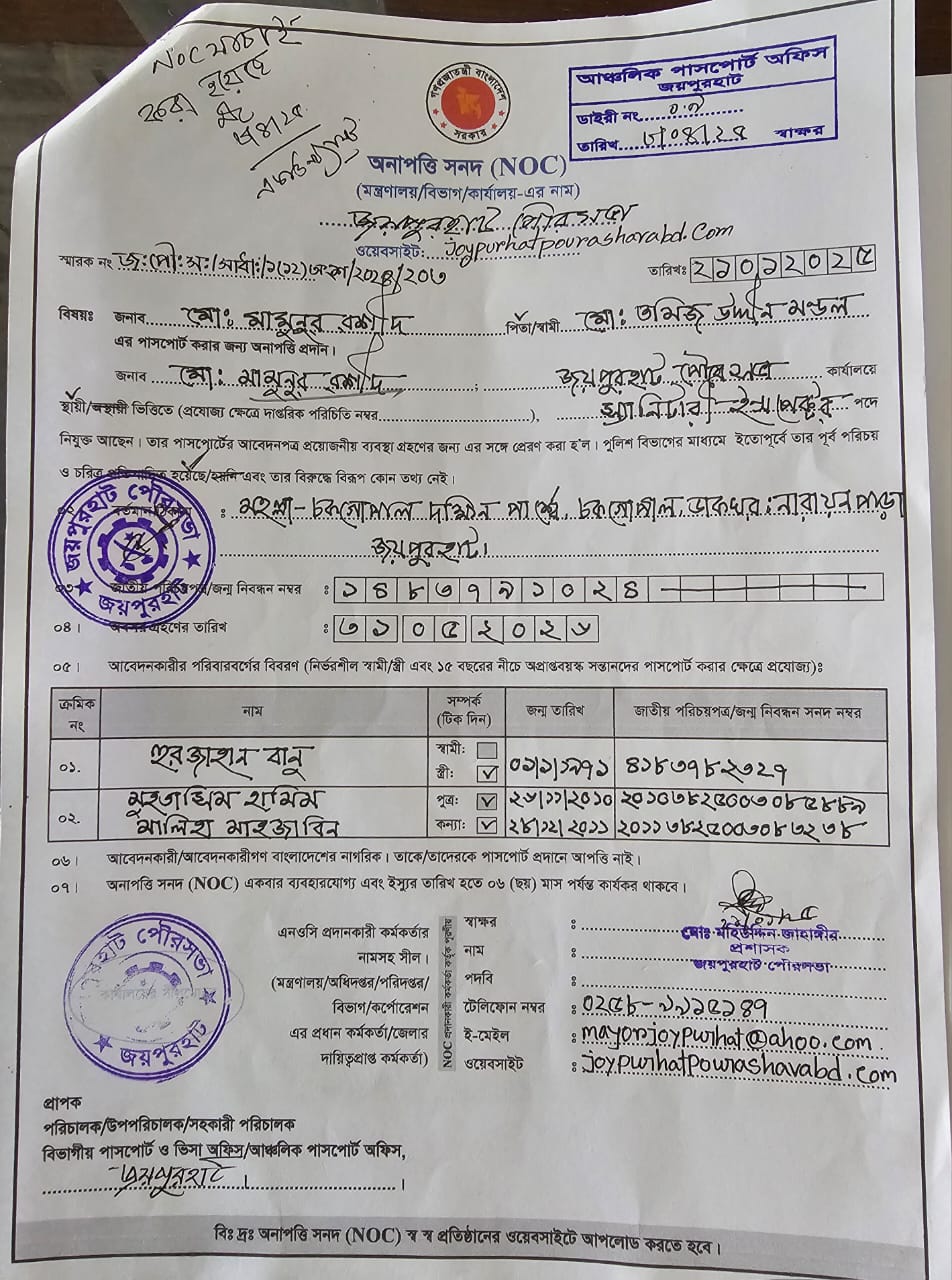 প্রশাসক, জয়পুরহাট পৌরসভা।